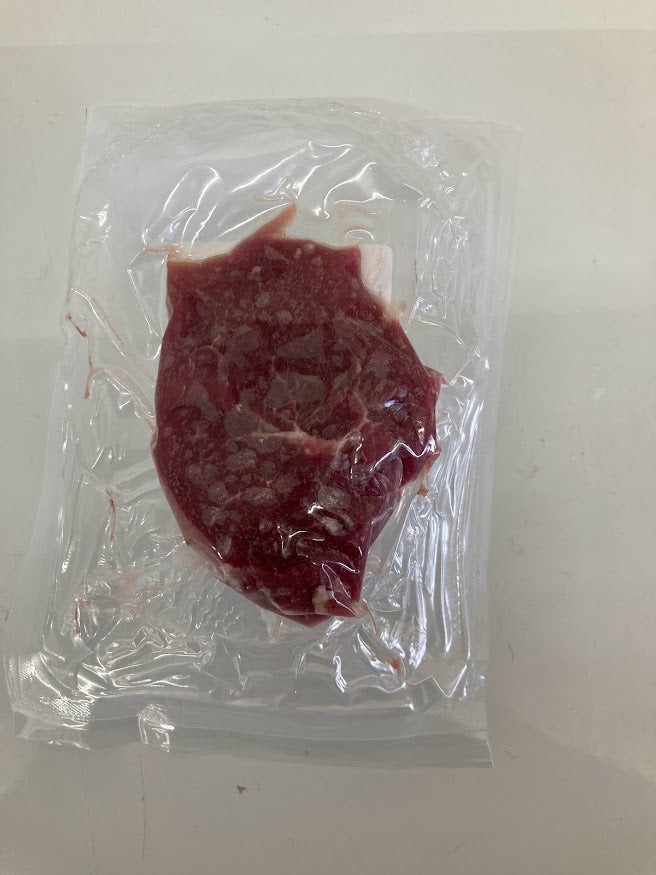 Steaks are 1.5" thick, come 1/package and weigh approx. 0.2lbs each.